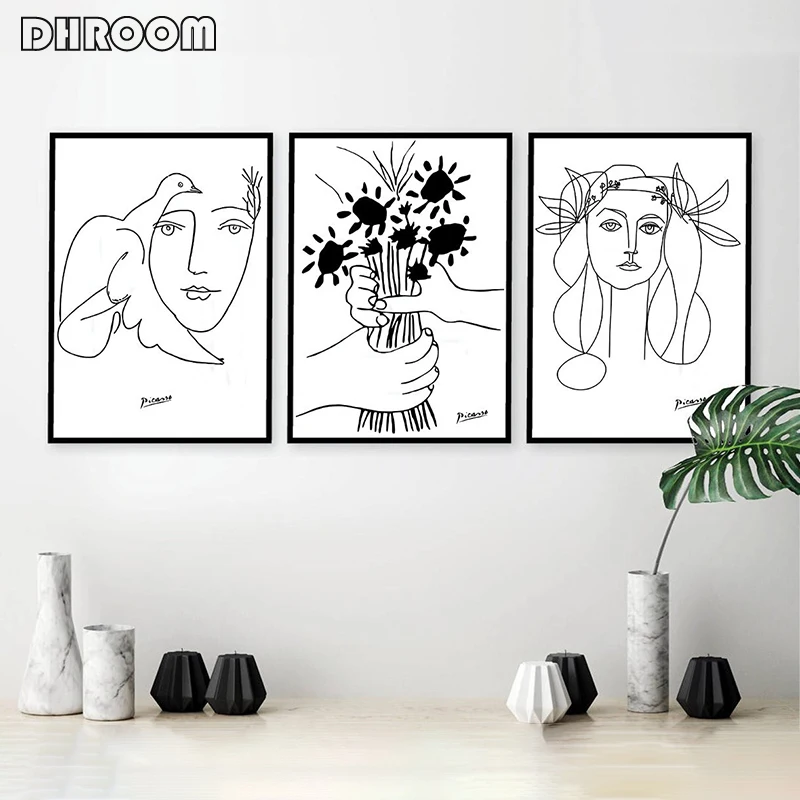 Picasso Line Art Drawing Canvas Art Prints Sketches Woman Bouquet of Peace Painting Poster Minimalist Wall Art Home Wall Decor. Save up to 42% of US $5.49. Only US $3.18